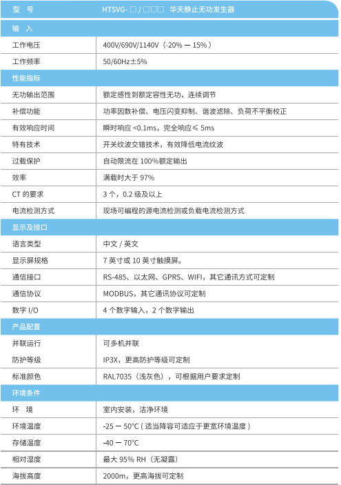 華天靜止無功發(fā)生器HTSVG(適用于低壓配電系統(tǒng))是無功補(bǔ)償領(lǐng)域最新技術(shù)的代表,屬于靈活柔性交流輸電系統(tǒng)(FACTS)的重要組成部分。SVG并聯(lián)于電網(wǎng)中,相當(dāng)于一個可控的無功電流源,其無功電流可以快速地跟隨負(fù)荷無功電流的變化而變化,自動補(bǔ)償電網(wǎng)系統(tǒng)所需無功功率,同時濾除系統(tǒng)中部分諧波,對電網(wǎng)無功功率、諧波實現(xiàn)動態(tài)無級補(bǔ)償。