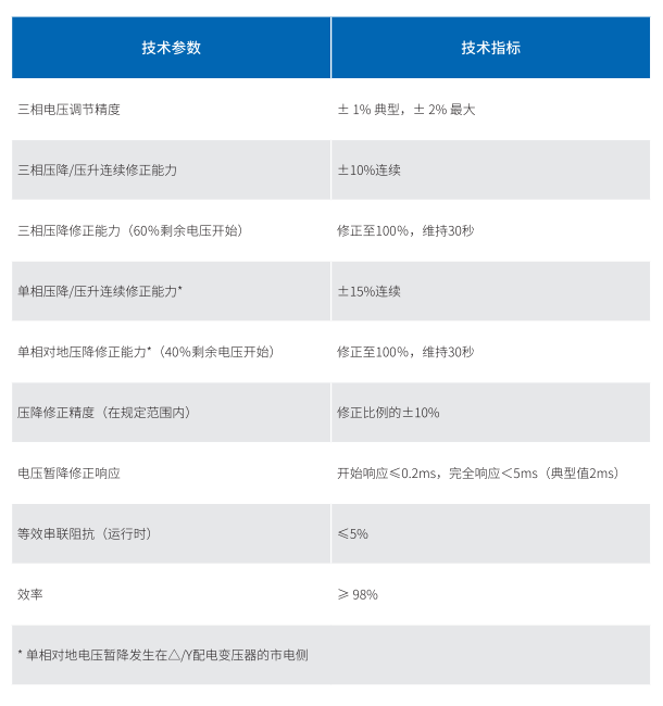 電壓暫降補償、電壓暫升補償、相角誤差修正、電壓不平衡修正、連續在線調壓、電壓波動與閃變