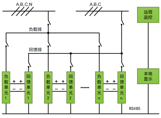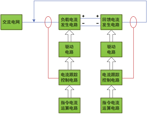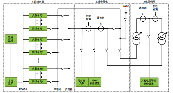 每個“負載單元”可以編程輸出各種負載波形,其輸入的有功功率通過“回饋單元”實現(xiàn)平衡。由于“回饋單元”可以實現(xiàn)雙向能量控制,因此“負載單元”通過編程可以模擬為阻性負載、容性負載、感性負載、整流器負載、電動機、發(fā)電機等各種類型的負載,也可以模擬以上幾種類型負載的疊加。