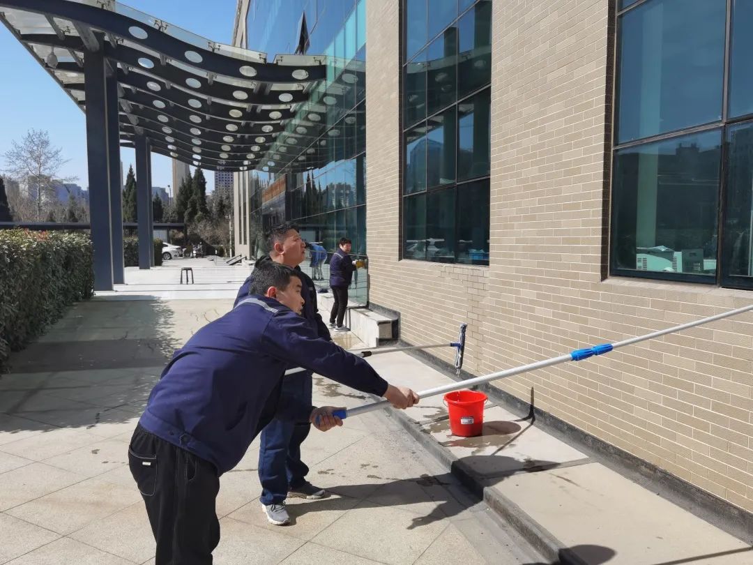 華天各部門(mén)員工代表自愿組成志愿者服務(wù)隊(duì),進(jìn)行義務(wù)勞動(dòng),從辦公區(qū)到停車(chē)場(chǎng),從大樓外墻到邊邊角角,將公司內(nèi)外打掃得干干凈凈,煥然一新。