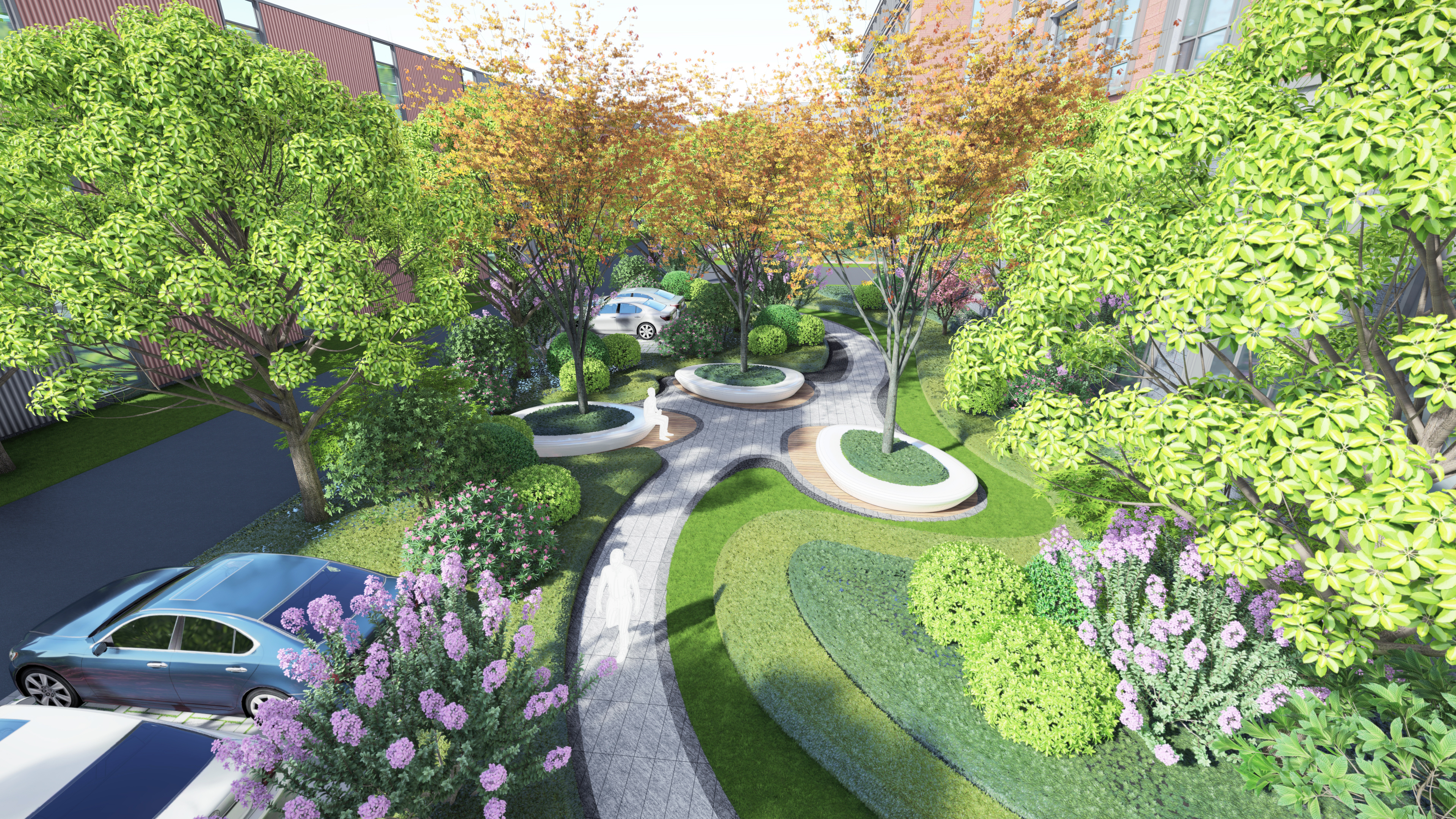 園區(qū)著力打造綠色生產(chǎn)辦公環(huán)境,設置綠肺中庭花園,精心規(guī)劃1800多平方米具有休閑性質(zhì)的下沉廣場,并配套有餐廳和超市等服務設施。園區(qū)西側(cè)為新修建的規(guī)劃路,朝向規(guī)劃路設計有主、次出入口,內(nèi)部交通流線布局合理,配套建設地下停車位127個,地上停車位54個,配建地上充電樁車位36個。